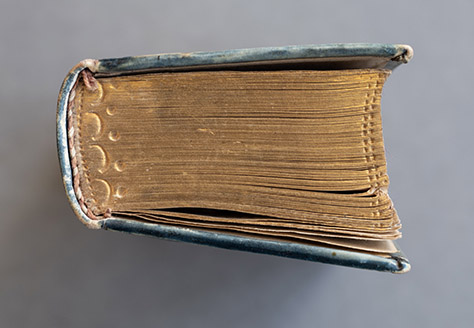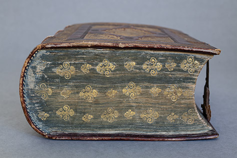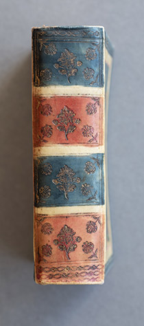 The edges of the pages were stained blue, and then stamped with alternating gilt rosettes. These display a high level of craftsmanship, but above all, they are the sign of a love for books and the wisdom they contain.