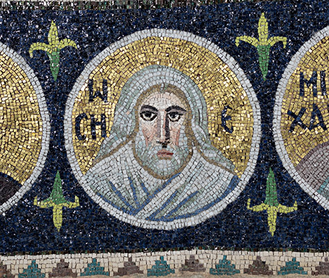 Portrait medallion of the Prophet Hosea from the sixth century Sinai apse mosaic.