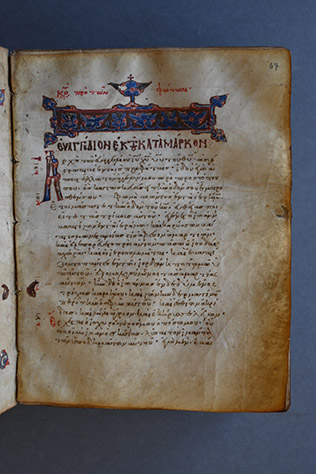 Sinai Greek 172, folio 67 recto, the beginning of the Gospel according to Mark.