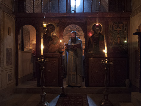 The Archbishop’s chapel is dedicated to the Dormition of the All-holy Theotokos. For the feast day itself, all the monastery clergy concelebrated in the basilica. Father Michael celebrated the Divine Liturgy in the little chapel a few days later, within the octave of the feast.