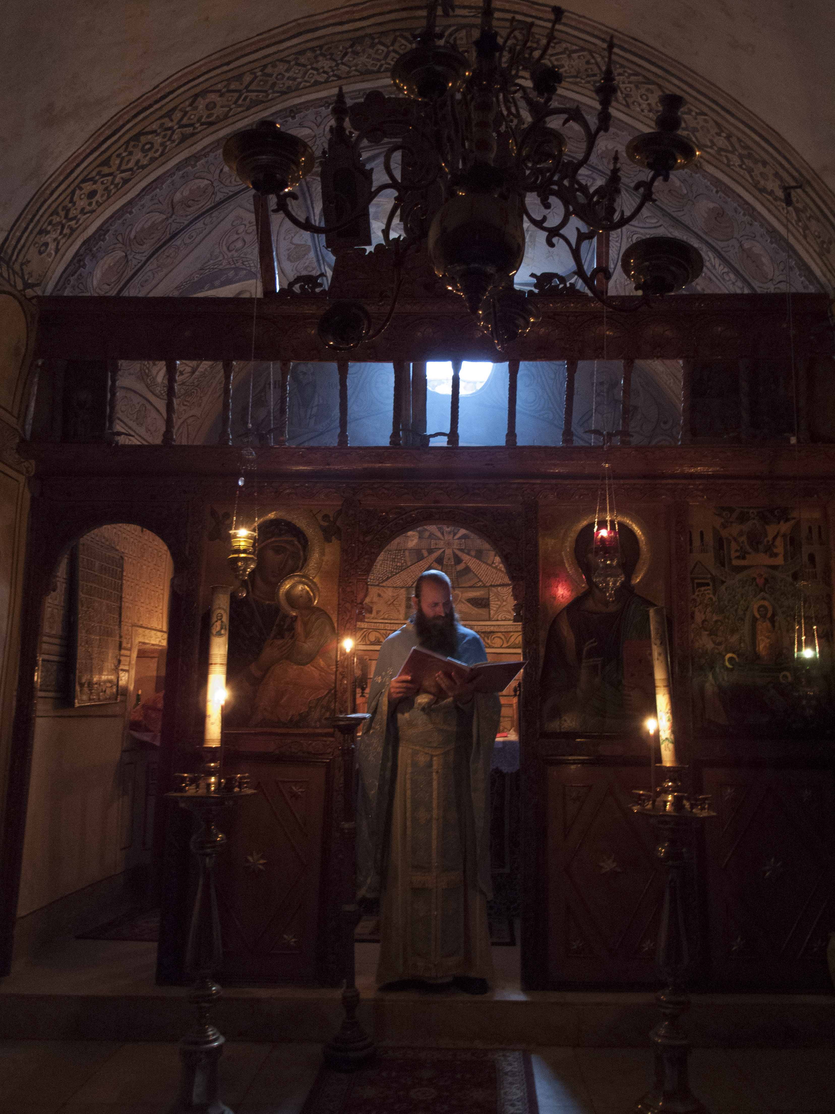 The principal icons on the iconostasion date from the seventeenth century. They are adorned with silver haloes.