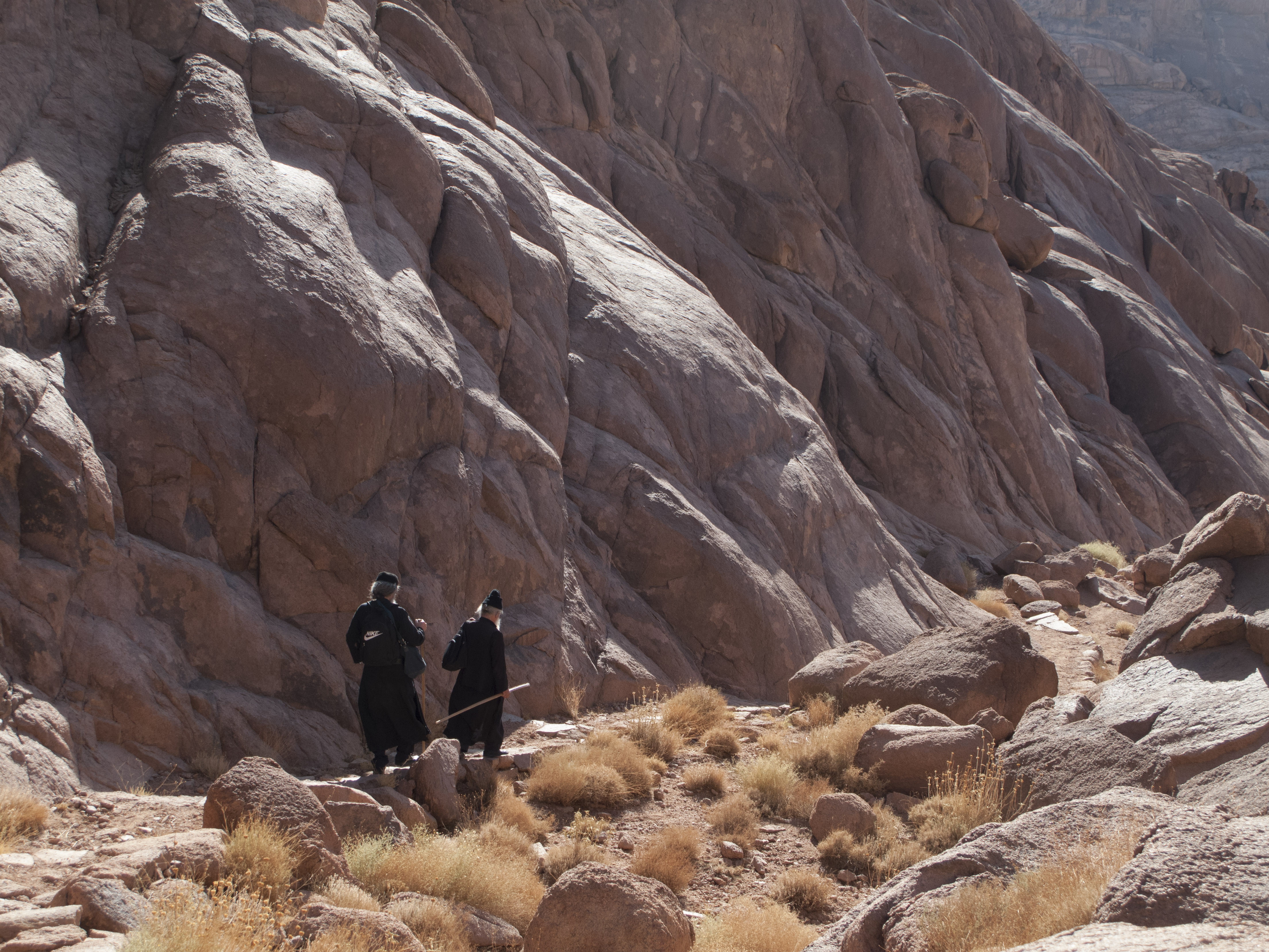 Beginning the long trek back to the monastery. The peak of Sinai is visible in the distance.