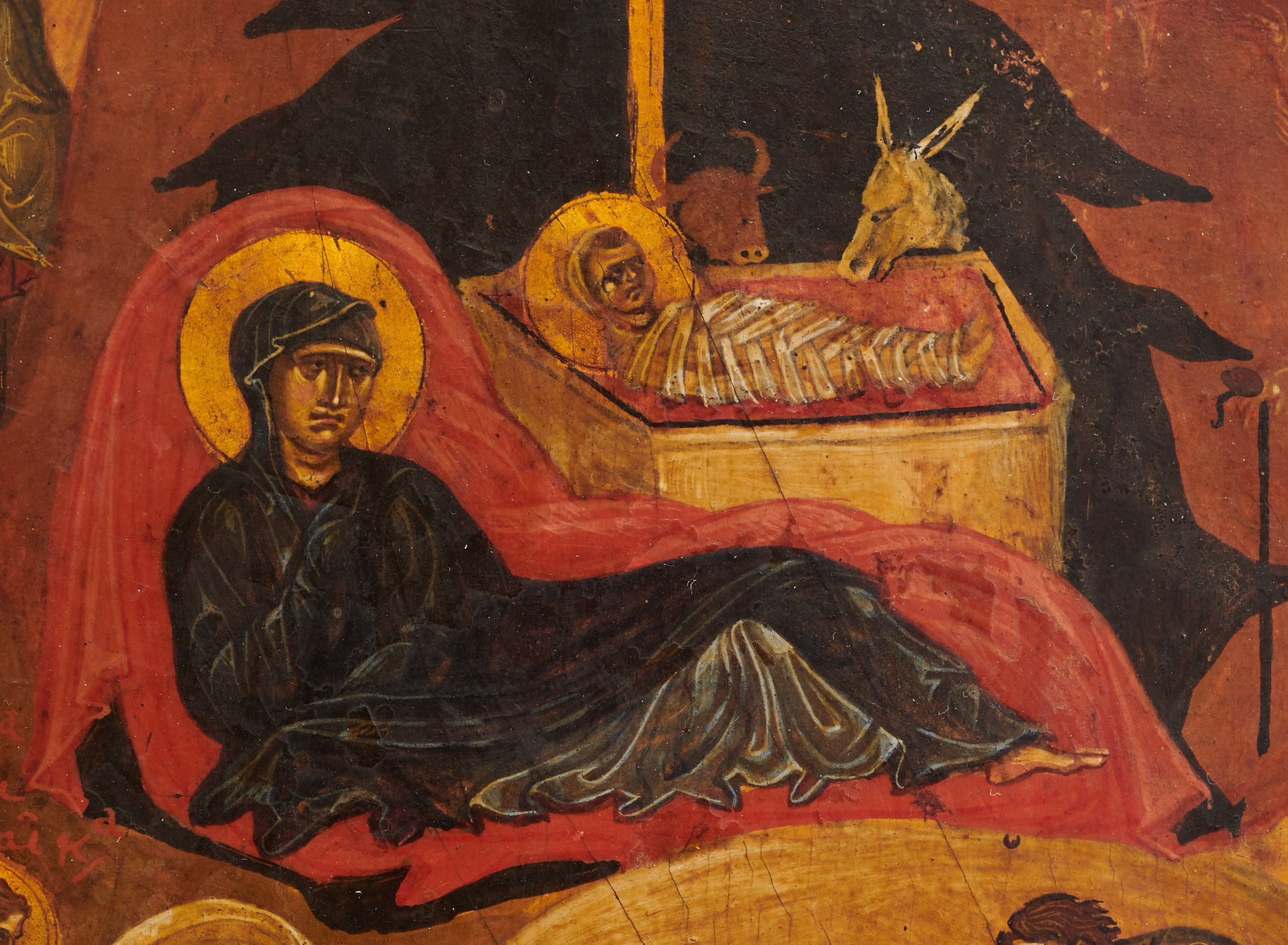 We do have icons of the Twelve Great Feasts. This is only an icon of the Nativity, but it is complex, with many depictions in layer upon layer. There is the Virgin Mary with the Christ Child within the cave, the star above, wise men travelling towards Bethlehem, offering their gifts, and departing on the opposite side. We have the shepherds, the bathing of the Child, the Angel appearing to Joseph in a dream, the flight into Egypt, and the massacre of the Innocents. The panel is small, and each depiction has been executed in a miniature scale that makes the icon even more astonishing.