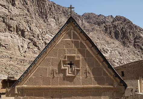 The west face of the Sinai basilica is decorated with a central cross and two flanking palm trees bearing clusters of dates. These were carved out of solid granite blocks in the middle of the sixth century. Δίκαιος ὡς φοῖνιξ ἀνθήσει. The righteous shall flourish like the palm tree. (Psalm 91:13 LXX) |