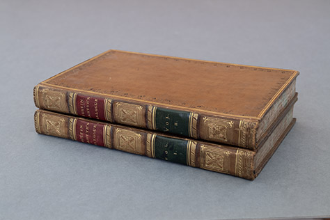 This beautifully bound copy has a dedicatory inscription on the title page of the first volume, “G H Wheler from the Revd Thomas Wills.” Granville Wheler was a clergyman of the Church of England. He lived at Otterden Place, in Faversham, Kent, England. In 1729, he was the first to prove that electricity can be conducted, for which he was elected a Fellow of the Royal Society. Granville Wheler died in 1770, and his library was dispersed the following year. In 1774, Thomas Wills married Selina Margaretta Wheler, third daughter of Granville Wheler.
