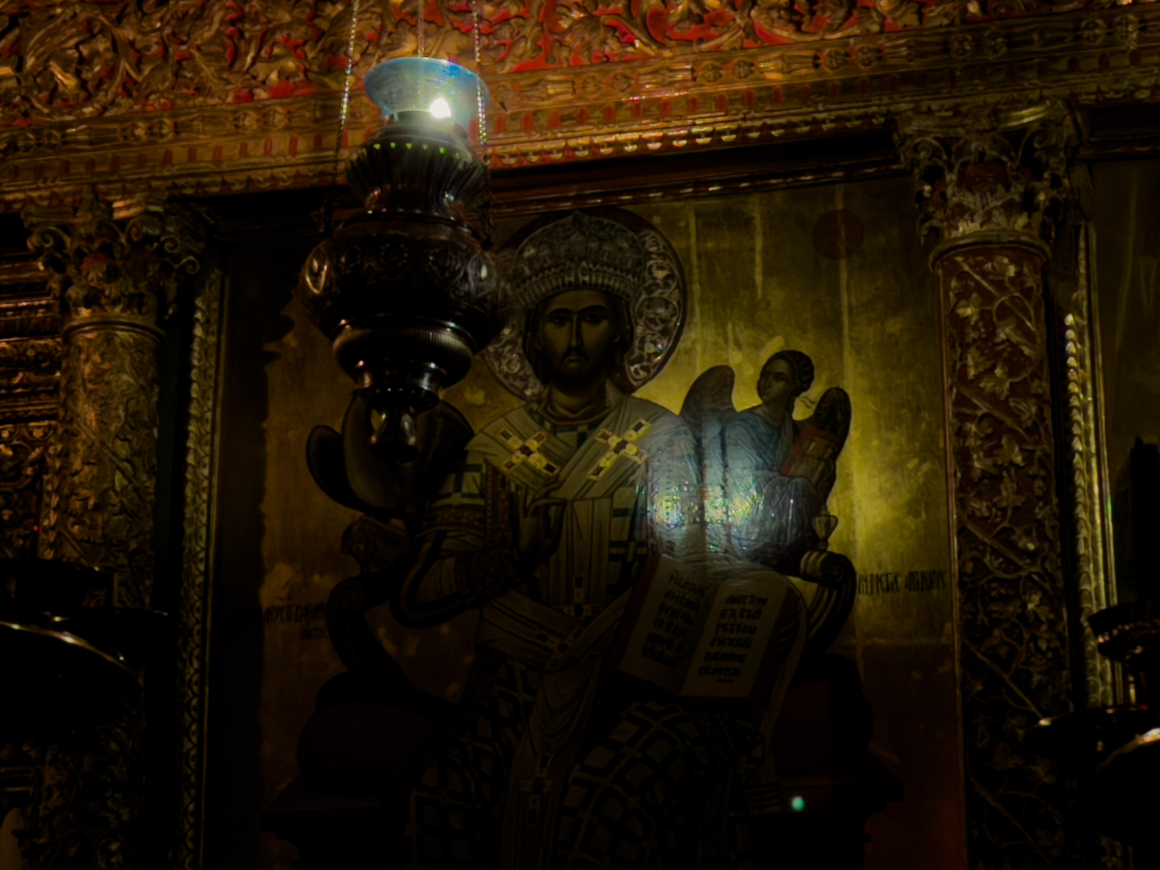 All the lamps were lit over the reliquary of Saint Catherine, which was adorned with embroideries.