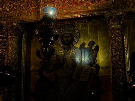 At four o’clock in the morning we begin Mesonyktikon, the Midnight Office. The icon of Christ on the iconostasion is lit by a single icon lamp. He is vested as the Great High Priest, and crowned as the King of Kings. At the four corners of His throne are the four living creatures beheld by the Prophet Ezekiel — the angel, the lion, the ox, and the eagle. In the early Church, these became symbols of the Four Evangelists.