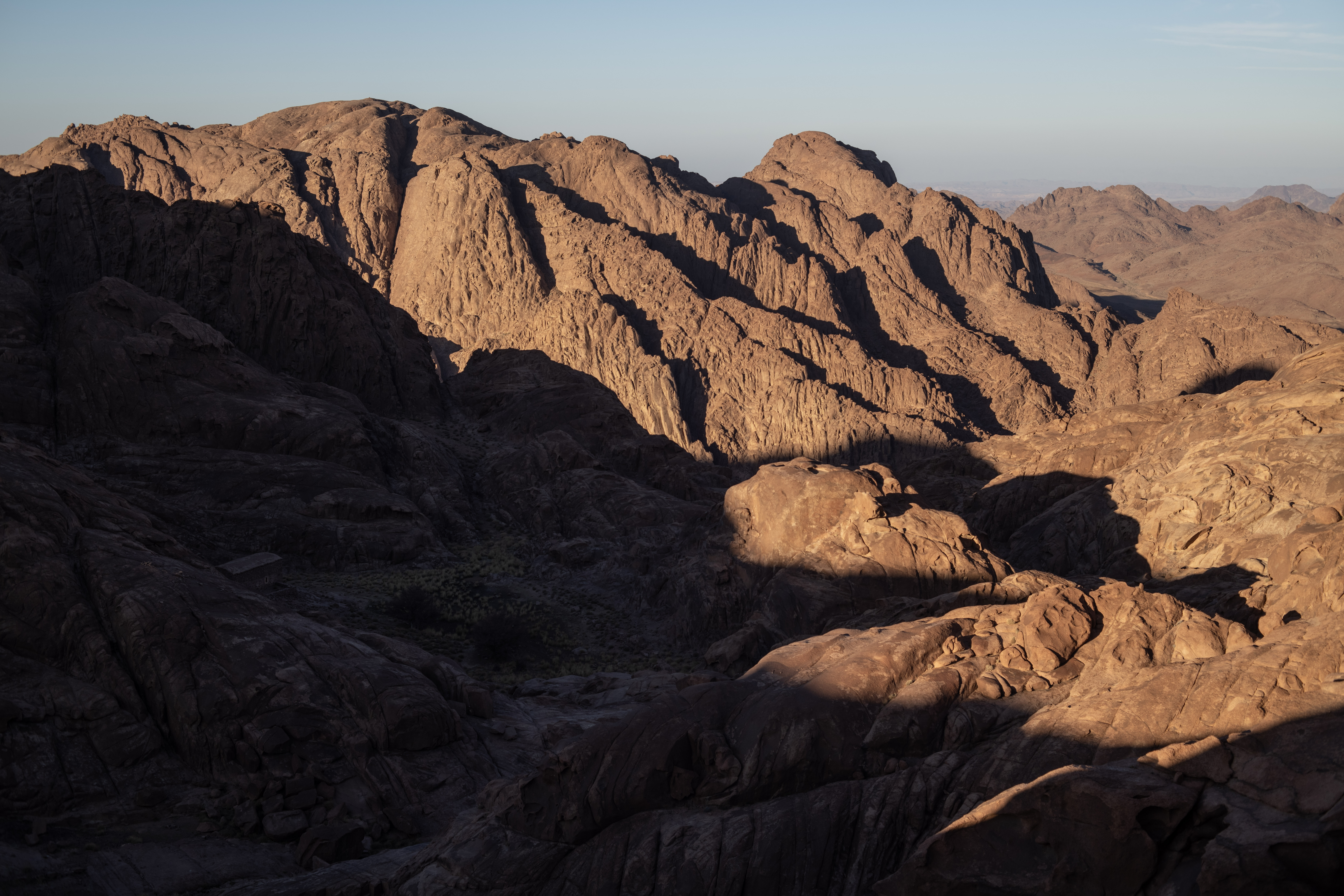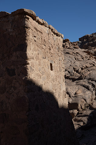 The two gates in the centre of the iconostasion always depict the Annunciation. But here at Sinai there is an exception to the rule, since this is the place of holy prophets. On the left is Moses, holding the Tablets of the Law, and on them, objects of the tabernacle. He was shown the tabernacle in sacred vision and commanded to make the same, that the worship offered here below should be ‘unto the example and shadow of heavenly things’ (Hebrews 8:5). On the right is Aaron clothed in the vestments of the High Priest, holding a censer and the rod that ‘brought forth buds, and bloomed blossoms, and yielded almonds’ (Numbers 17:8).