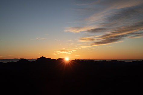 Sunrise from the last station along the camel trail. From this point, pilgrims ascend to the peak of Sinai by the ancient steps, which are too steep for camels.