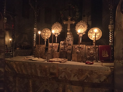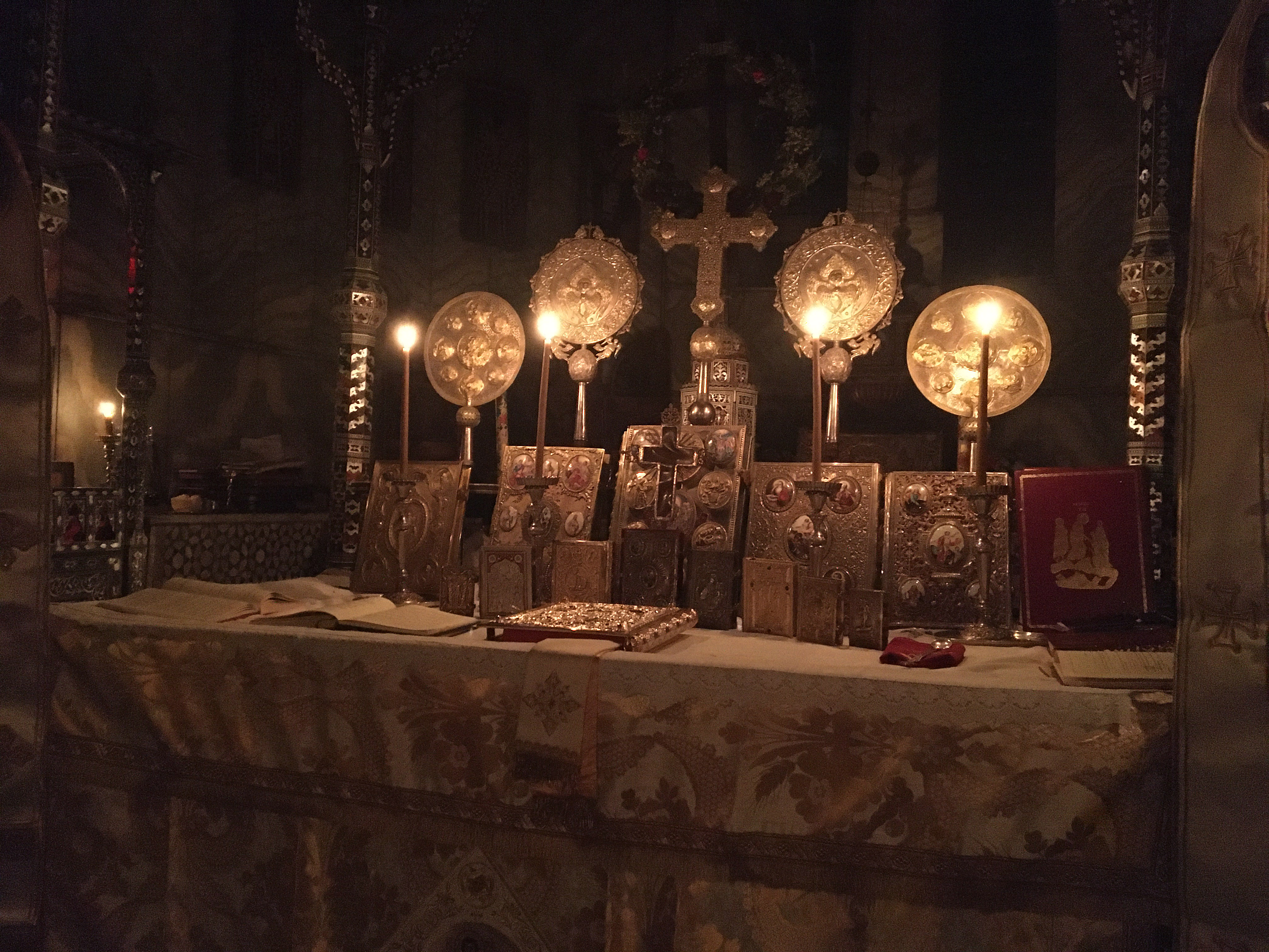 Two passages from Saint Gregory the Theologian’s Oration 44, On the New Lord’s Day, in which he extols a creation that has come back to life after the cold and death of winter. Ἡ βασίλισσα τῶν ὡρῶν τῇ βασιλίδι τῶν ἡμερῶν πομπεύει, καὶ δωροφορεῖ παρ’ ἑαυτῆς πᾶν ὅ τι κάλλιστον καὶ τερπνότατον. Νῦν οὐρανὸς διαυγέστερος· νῦν ἥλιος ὑψηλότερος καὶ χρυσοειδέστερος· νῦν σελήνης κύκλος φανότερος, καὶ ἀστέρων χορὸς καθαρώτερος. Νῦν αἰγιαλοῖς μὲν κύματα σπένδεται, ἡλίῳ δὲ νέφος, ἀέρι δὲ ἄνεμοι, γῆ δὲ φυτοῖς, φυτὰ δὲ ὄψεσι. Νῦν πηγαὶ διαυγέστερον νάουσι· νῦν δὲ ποταμοὶ δαψιλέστερον, τῶν χειμερίων δεσμῶν λυθέντες. Καὶ λειμὼν εὐωδεῖ, καὶ φυτὸν βρύει, καὶ κείρεται πόα, καὶ ἄρνες ἐπισκιρτῶσι χλοεραῖς ταῖς ἀρούραις. Ἔτι δὲ συντομώτερον εἰπεῖν, νῦν ἔαρ κοσμικὸν, ἔαρ πνευματικὸν, ἔαρ ψυχαῖς, ἔαρ σώμασιν, ἔαρ ὁρώμενον, ἔαρ ἀόρατον· οὗ κἀκεῖθεν μεταλάβοιμεν ἐνταῦθα καλῶς ἀμειφθέντες, καὶ καινοὶ πρὸς τὸν καινὸν βίον παραπεμφθείημεν, ἐν Χριστῷ Ἰησοῦ τῷ Κυρίῳ ἡμῶν, ᾧ πᾶσα δόξα, τιμὴ, καὶ κράτος σὺν ἁγίῳ Πνεύματι, εἰς δόξαν Θεοῦ Πατρός. Ἀμήν. The queen of the seasons leadeth a triumphant procession with this princess of the days, and they are regally escorted by everything most comely and delightful. Now heaven is more translucent; now the sun is more lofty and more golden; now the moon’s orb is more luminous, and the choir of the stars is more illustrious. Now the waves have made peace with the rocky coast, the clouds with the sun, the winds with the air, the earth with vegetation, and vegetation with the eyes of men. Now the springs run more purely; now the rivers surge more abundantly, the mountain torrents being loosed of their bonds. The meadow is fragrant, plant life flourisheth, the grassy meadows are shorn, and the lambs skip beholding the luxuriant verdure of seeded fields. But to put it still more succinctly, now is springtime of the world, springtime of the spirit, springtime for souls, springtime for bodies, springtime that is visible, springtime invisible, of which may we partake yonder, having here been excellently changed; and may we, all renewed, be escorted to that new life in Christ Jesus our Lord, to whom be all glory, honour, and dominion with the Holy Spirit unto the glory of God the Father. Amen. Dark clouds and thunder during Holy Week. Ἐρχόμενος ὁ Κύριος, πρὸς τὸ ἑκούσιον Πάθος, τοῖς Ἀποστόλοις ἔλεγεν ἐν τῇ ὁδῷ. Ἰδοὺ ἀναβαίνομεν εἰς Ἱεροσόλυμα, καὶ παραδοθήσεται ὁ Υἱὸς τοῦ ἀνθρώπου, καθώς γέγραπται περὶ αὐτοῦ. Δεῦτε οὖν καὶ ἡμεῖς, κεκαθαρμέναις διανοίαις, συμπορευθῶμεν αὐτῷ, καὶ συσταυρωθῶμεν, καὶ νεκρωθῶμεν δι’ αὐτόν, ταῖς τοῦ βίου ἡδοναῖς, ἵνα καὶ συζήσωμεν αὐτῷ, καὶ ἀκούσωμεν βοῶντος αὐτοῦ, οὐκέτι εἰς τὴν ἐπίγειον Ἱερουσαλήμ, διὰ τὸ παθεῖν, ἀλλὰ ἀναβαίνω πρὸς τὸν Πατέρα μου, καὶ Πατέρα ὑμῶν, καὶ Θεόν μου, καὶ Θεὸν ὑμῶν, καὶ συνανυψῶ ὑμᾶς εἰς τὴν ἄνω Ἱερουσαλήμ, ἐν τῇ Βασιλείᾳ τῶν οὐρανῶν. When the Lord was coming to his voluntary Passion, he said to his Apostles in the way: Behold, we go up to Jerusalem, and the Son of man shall be delivered up, as it is written concerning him. Come, therefore, with minds purified, let us also go in the way with Him, and let us be crucified with Him, and let us die for him to the pleasures of this life, that we may also live with him, and may hear him crying: No longer do I go to the earthly Jerusalem to suffer, but I ascend unto my Father and your Father, and unto my God and your God; and I will raise you up together unto the Jerusalem on high, in the Kingdom of the heavens. The Praises from Matins of Holy and Great Monday Καὶ ἀνέβη Μωυσῆς καὶ ᾿Ααρὼν καὶ Ναδὰβ καὶ ᾿Αβιοὺδ καὶ ἑβδομήκοντα τῆς γερουσίας ᾿Ισραήλ καὶ εἶδον τὸν τόπον, οὗ εἱστήκει ὁ Θεὸς τοῦ ᾿Ισραήλ· καὶ τά ὑπὸ τοὺς πόδας αὐτοῦ ὡσεὶ ἔργον πλίνθου σαπφείρου καὶ ὥσπερ εἶδος στερεώματος τοῦ οὐρανοῦ τῇ καθαριότητι. Καὶ τῶν ἐπιλέκτων τοῦ ᾿Ισραὴλ οὐ διεφώνησεν οὐδὲ εἷς· καὶ ὤφθησαν ἐν τῷ τόπῳ τοῦ Θεοῦ καὶ ἔφαγον καὶ ἔπιον. And Moses went up, and Aaron, and Nadab and Abiud, and seventy of the elders of Israel. And they saw the place where the God of Israel stood; and under his feet was as it were a work of sapphire slabs, and as it were the appearance of the firmament of heaven in its purity. And of the chosen ones of Israel there was not even one missing, and they appeared in the place of God, and did eat and dr
